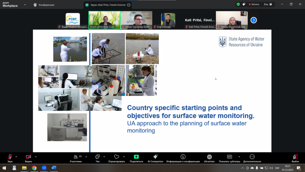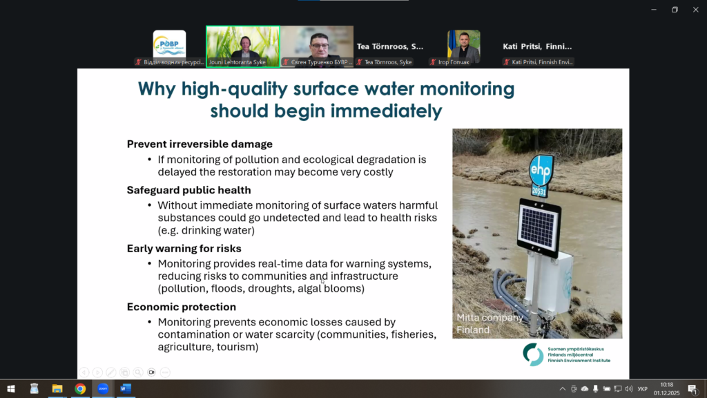 У рамках реалізації Компоненту 1 «Підвищення надійності даних щодо якості поверхневих вод, отриманих відповідно до (основних) вимог ЄС щодо управління навколишнім середовищем, його захисту та відновлення» 1 грудня 2025 року фахівці РОВР у Сумській області долучились до онлайн-тренінгу «Як планувати програму моніторингу відповідно до Водної Рамкової Директиви».