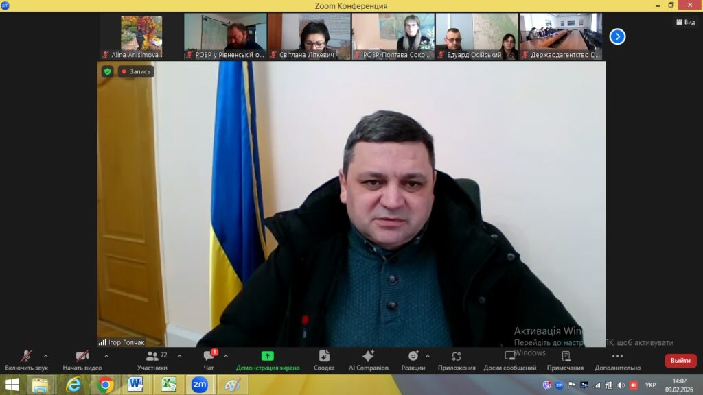 З метою виконання розпоряджень Кабінету Міністрів України від 1 листопада 2024 р. № 1077-р «Про затвердження планів управління річковими басейнами Дніпра та Дону на 2025-2030 роки», від 1 листопада 2024 р. № 1078-р «Про затвердження планів управління річковими басейнами Вісли, Дністра та Південного Бугу на 2025-2030 роки», від 1 листопада 2024 р. № 1079-р «Про затвердження планів управління річковими басейнами річок Причорномор’я, Приазов’я та Криму на 2025-2030 роки» та від 31 грудня 2024 р. № 1347-р «Про затвердження плану управління річковим басейном Дунаю на 2025-2030 роки» щодо узагальнення інформації про стан виконання ПУРБ, Державним агентством водних ресурсів України 9 лютого 2026 року у режимі онлайн проведено технічну нараду щодо підготовки інформації про стан виконання планів управління річковими басейнами, до якої долучились представники Держводагентства, обласних державних адміністрацій, басейнових управлінь водних ресурсів, регіональних офісів водних ресурсів та експерти «Blue Rivers екологічний консалтінг», які розробили форми надання інформації про стан виконання ПУРБ та інструкція щодо їх заповнення.