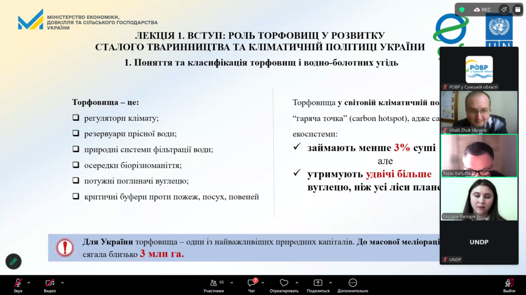 Участь в онлайн воркшопі «Управління торфовищами з урахуванням сталих підходів до тваринництва і впровадження палюдикультури в Україні»